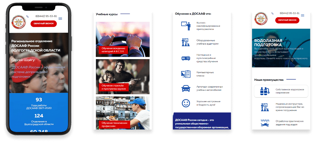 ДОСААФ России сегодня - это уникальная общественно-государственная оборонная организация, связывающие звено между армией и обществом. Поэтому в дизайн макете мы использовали государственно-военную символику и триколор. Простая структура под широкую целевую аудиторию, но при этом дизайн существенно отличается и выделяет ДОСААФ Волгоградской области на фоне других регионов.