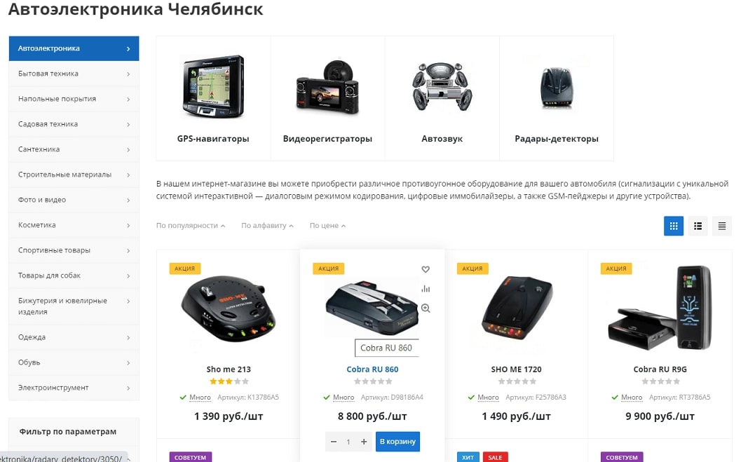 Так как категорий и подкатегорий в каталоге товаров не так много решили более презентабельно их продемонстрировать в выпадающем меню.