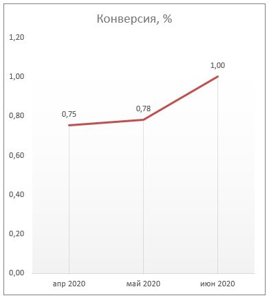 - Конверсия возросла с 0,75 до 1 % (увеличение на 33 %).