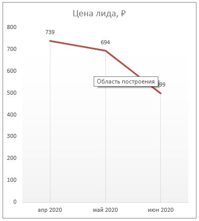 - Цена лида снизилась с 739 до 499 ₽ (снижение на 32 %).