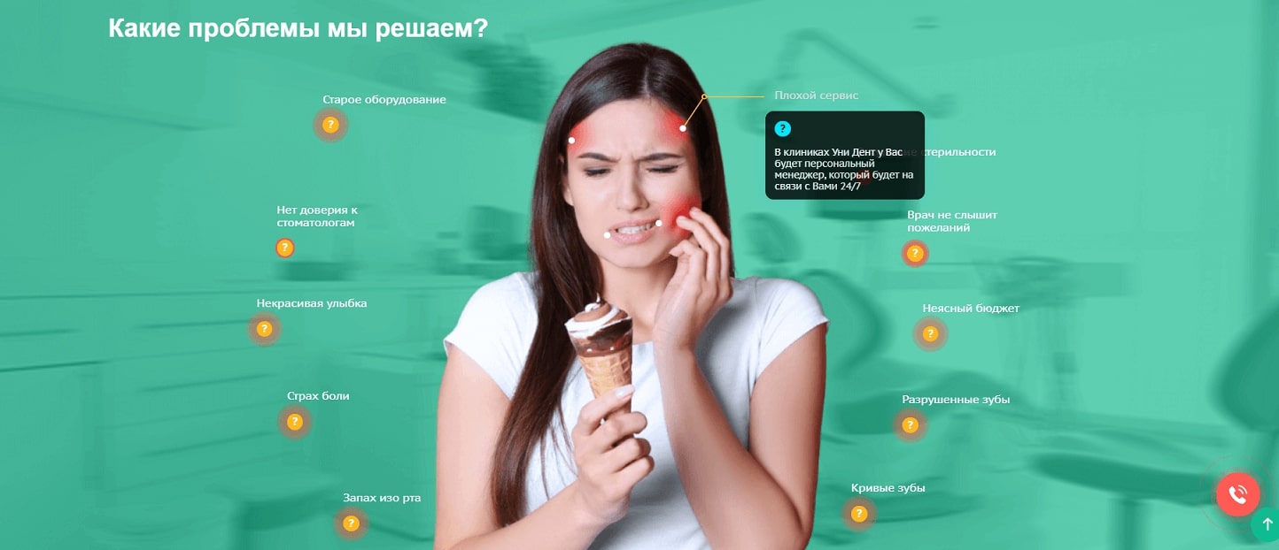 Интерактивный информационный блок, выявляющий потребность посетить стоматологию.