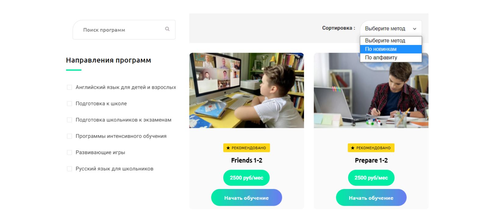 «Страна Чудес» организует достаточно много программ обучения детей по разным направлениям. Для удобной навигации и презентации всех направлений реализован полноценный каталог программ.