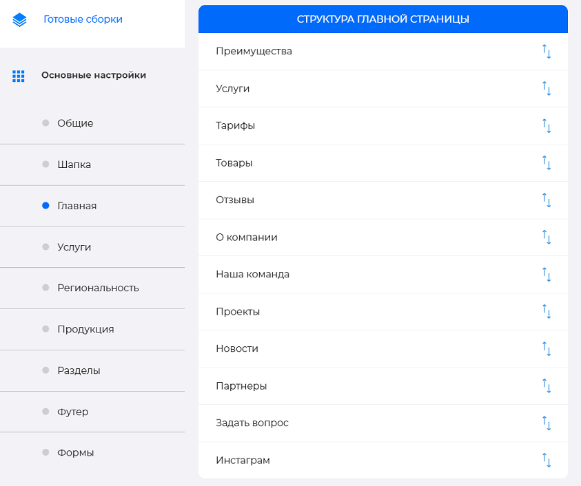 Редактируйте структуру главной страницы путем перемещения блоков.